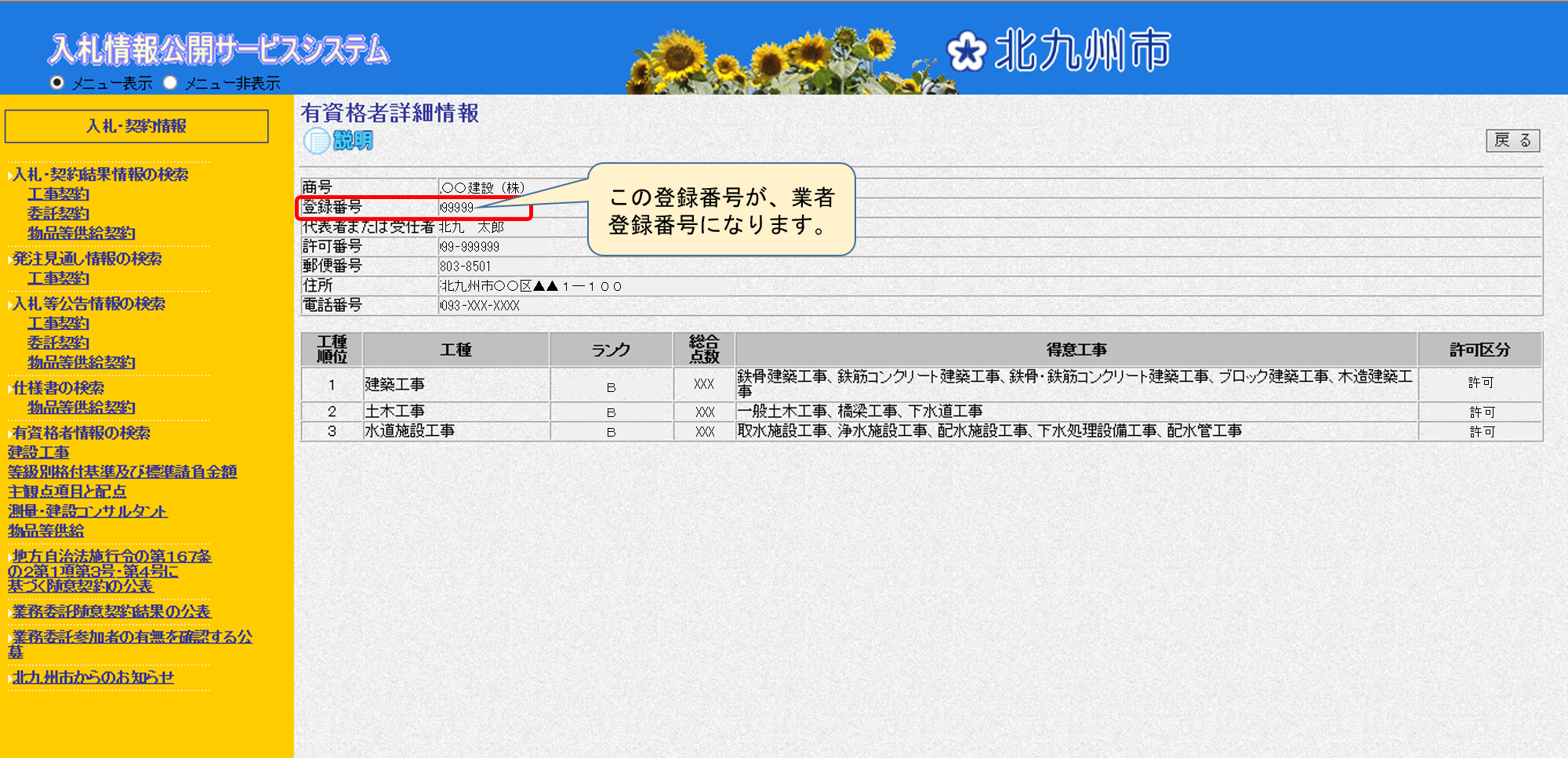 資格審査情報検索に必要な登録番号は、次のような番号の組み合わせとなります。